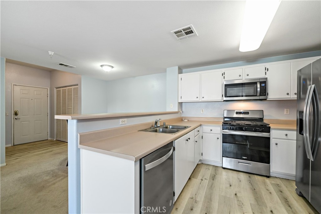 Discover the epitome of comfortable living in this gated, ground-floor condo boasting 2 bedrooms & 2 baths. Positioned to overlook lush green spaces & steps away from the community pool, gym, racquetball court & other amenities, this residence is a haven of convenience & relaxation. Centrally located off Temecula Parkway, the well-managed gated community not only offers a refreshing pool & spa but also features a sauna, gym, & poolside BBQ area. Step into an impressive open floor plan that seamlessly combines the kitchen, dining, & living areas. The breakfast counter invites casual snacking, while the spacious living room extends effortlessly to a covered patio, perfect for all your gatherings. The unit is adorned with newer LVP flooring in the entry, kitchen & bathrooms, enhancing its contemporary appeal. Enjoy the privacy of a thoughtfully designed split floor plan, where the 2nd bedroom has the potential to transform into an additional suite, adding versatility to the layout. Each room is generously sized & well-maintained, promising comfort & style. The master bathroom received a refresh with a new walk-in shower & offers a large walk-in closet. The kitchen, a focal point of this residence, boasts expansive counter spaces, freshly painted white cabinets, stainless steel appliances including fridge & ample storage, catering to both functionality & aesthetics. Whether you're a culinary enthusiast or simply appreciate a well-appointed space, this kitchen is sure to impress. At the entry is the laundry closet, including full size washer & dryer, outside the entrance is a separate storage closet & this unit also includes an assigned carport space #95. This property invites you to experience the charm of its design & the convenience of its location. Located directly across the street from Rancho Church & School, which have beautiful educational & athletic facilities, easily accessible to a wide variety of restaurants, grocery stores, as well as desirable stores such as Walmart, Home Depot, banks, & a multitude of other places where shoppers frequent. The hospital is located within 1/2 mi as well as an urgent care provider. Not to mention minutes away from the 15 Freeway for easy access to San Diego & a short drive to Temecula's Wine Country & Pechanga Resort. It's not just a condo; it's a lifestyle. Don't miss the opportunity to explore the potential of this great unit. Come & see for yourself – your ideal living space awaits.