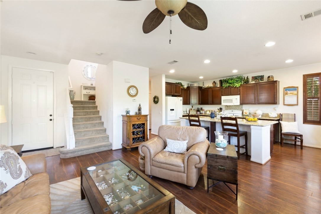 Welcome home to Wolf Creek Living in the Tamarack Community by Woodside Homes. Enjoy the rewards of family living with this immaculate turn key premium corner lot home with amazing upstairs views which boasts 1,846 Sq., Ft., 3 BDR, 2.5 BA, plus numerous upgrades including, formal living room, formal dining room, downstairs half bath, upgraded distressed dark laminate wood floors, upgraded tile flooring, designer paint, built in cabinetry, neutral carpeting, custom plantation shutters & window blinds throughout, full granite kitchen w/large kitchen island, large walk in pantry, GE white appliances, dark walnut kitchen cabinets, ceiling fans, mood light switches, a spacious master bedroom & master bath, mirrored closet doors, designer upgraded bathrooms, separate laundry room w/sink & cabinets. Two Car Garage. Home is equipped with an AQUA Soft Water Conditioner. Enjoy a perfect landscaped patio backyard w/3 different amazing entertaining areas, including a garden area and 3 fruit trees. Close to parks, restaurants, shopping, California Distinguished Schools, entertainment, and freeways.