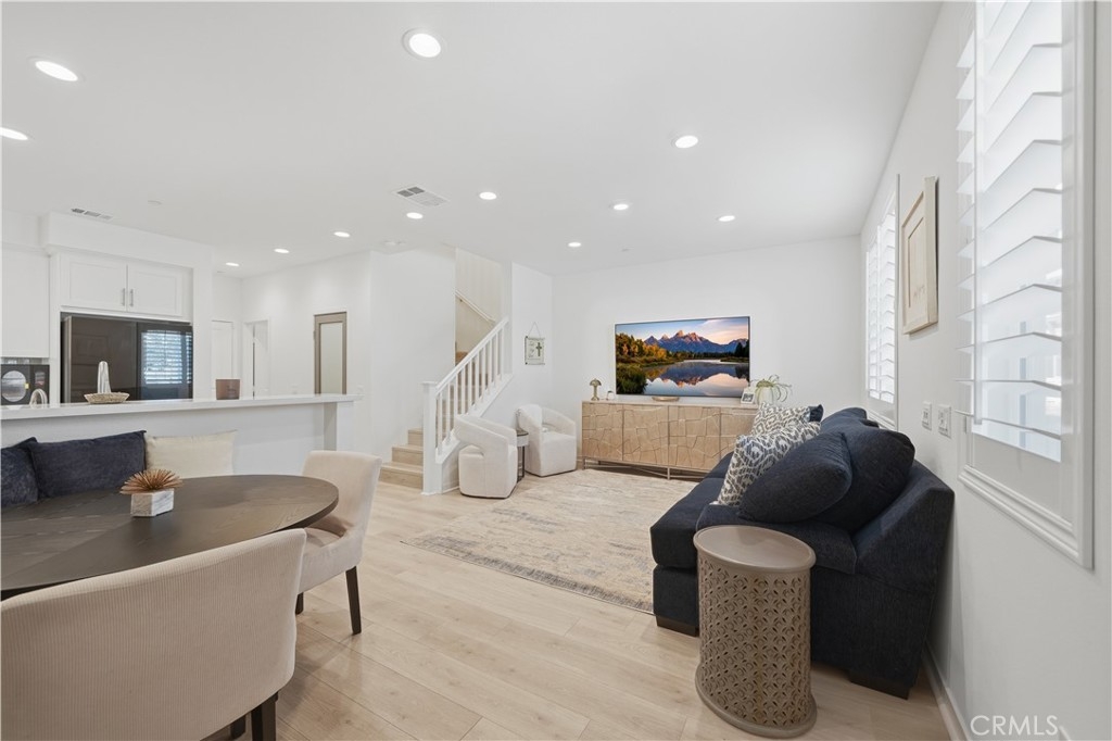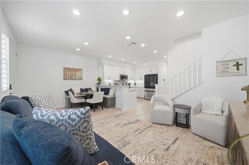 Welcome to this beautifully maintained, better-than-new home in Discovery at Sommers Bend. This highly upgraded townhome features owned solar, a whole-house reverse osmosis system, water softener, epoxy garage flooring, plantation shutters, and upgraded flooring and finishes throughout. With 3 bedrooms, 2 full baths upstairs, and a guest bath on the main level, this is a standout opportunity in one of Temecula’s newest and most desirable communities. The main level offers upgraded LVP flooring and 9-foot ceilings, creating a bright and open feel. The kitchen is thoughtfully designed with white shaker cabinetry, stainless steel appliances, an upgraded backsplash, and under-cabinet lighting. A built-in breakfast nook with bench seating and storage adds both function and charm. The wraparound storage and large pantry keep everything organized, while the living and dining areas flow naturally for everyday living and entertaining. Upstairs, enjoy 9 foot ceilings, upgraded carpeting and padding, with three well-sized bedrooms, including a spacious primary suite with a large walk-in closet. The ensuite bathroom features dual sinks and a walk-in shower. The two secondary bedrooms also include walk-in closets, and the guest bathroom offers dual sinks and a shower-tub combination. The private entry patio provides a comfortable outdoor space to relax or unwind. The attached 2-car garage with epoxy flooring offers both durability and a clean, finished look. As a resident of Sommers Bend, you’ll enjoy access to resort-style amenities including pools, a 21-acre park, fitness center, clubhouse, walking trails, and year-round community events. Conveniently located near Temecula’s wineries, Pechanga Resort, shopping, major freeways, and award-winning schools.