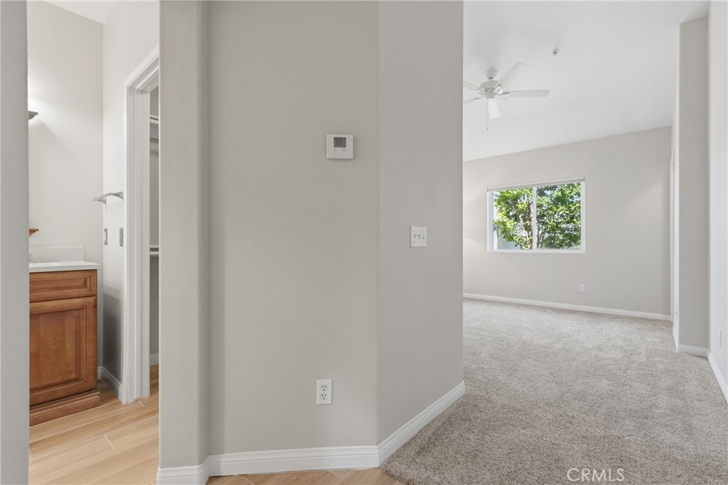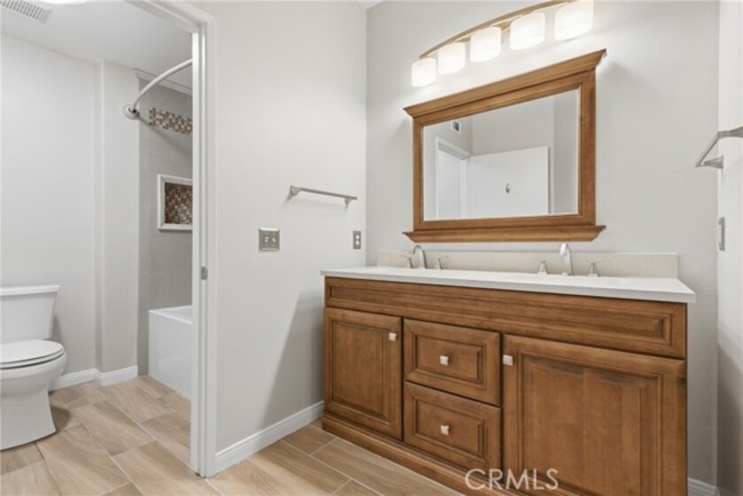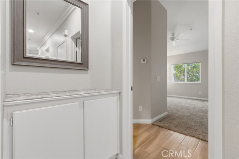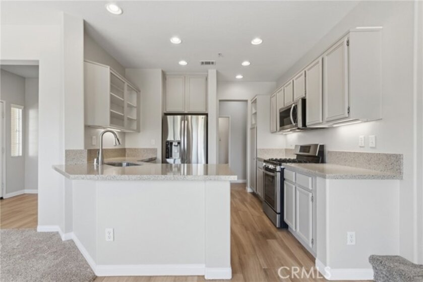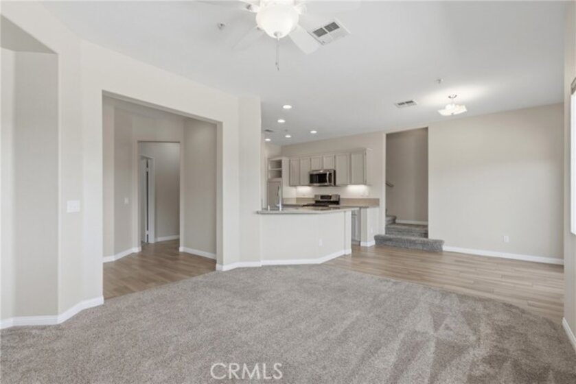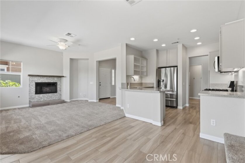 Welcome to a truly rare opportunity in the heart of Temecula. This beautifully upgraded downstairs condo with a private backyard offers a unique blend of comfort, flexibility, and peaceful outdoor living that’s hard to find. Located within a secure gated community, this home features 2 bedrooms and 2 bathrooms, along with a spacious upstairs loft complete with a walk-in closet ideal for a potential 3rd bedroom, home office, or bonus living space. Thoughtfully updated in neutral tones, the home is warm, inviting, and ready for you to make it your own. Wood-look tile flooring and plush carpet run throughout, creating a seamless and stylish feel. The kitchen is both functional and welcoming, featuring Silestone quartz countertops, off-white cabinetry, included refrigerator, and a dining area that opens to the backyard through a sliding glass door perfect for indoor-outdoor living. The adjacent family room offers a cozy fireplace and large windows that bring in natural light and serene backyard views. Tucked toward the back of the home for added privacy, the oversized primary suite features a walk-in closet, ceiling fan, and a beautifully remodeled bathroom with dual sinks and a custom tile shower. A secondary bedroom and full bathroom are also conveniently located on the main level, along with an indoor laundry room complete with storage-washer and dryer included. Upstairs, the expansive loft provides additional flexibility with its own walk-in closet and ceiling fan, along with beautiful mountain views. Whether used as a guest space, office, or converted into a third bedroom, it adds incredible versatility to the home. What truly sets this property apart is the oversized private backyard - a rare find for a condo. Enjoy fresh sod, pomegranate and plum trees, a vinyl fence, and newly painted concrete, all backing directly to Temecula Creek. This peaceful, scenic setting is perfect for morning coffee, relaxing evenings, or entertaining guests. The attached 2-car garage is complete with epoxy flooring, insulated doors, and built-in storage cabinets. Situated in the highly sought after Auberry Place community, residents enjoy beautifully maintained grounds along with amenities including a pool, spa, and tot lot. Conveniently located near top-rated schools, Temecula Wine Country, shopping, dining, and just minutes from the 15 Freeway this home truly offers the best of location and lifestyle.