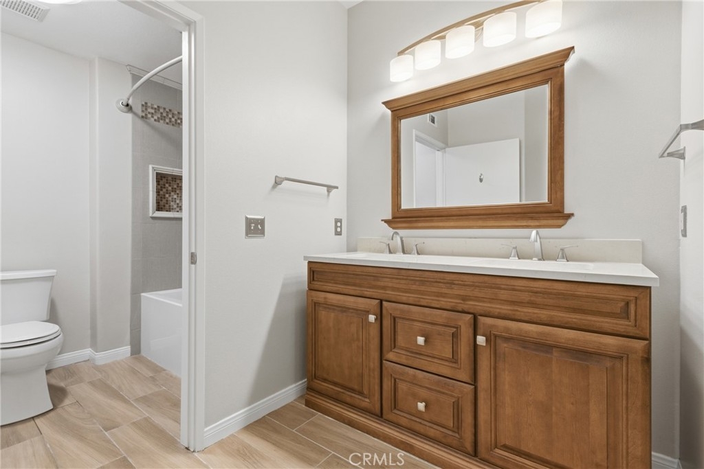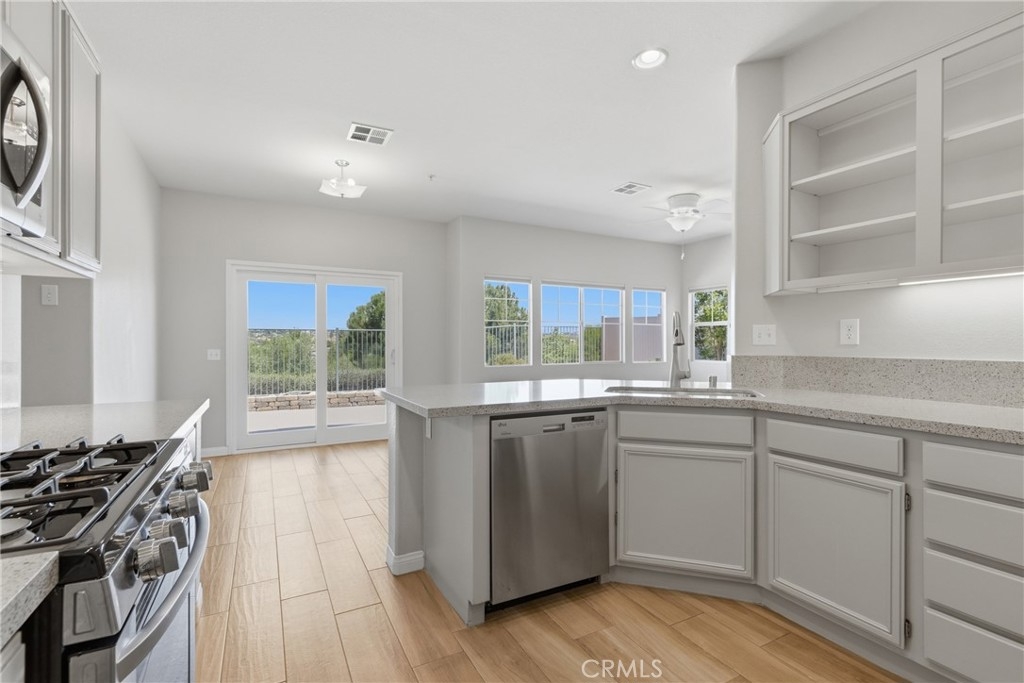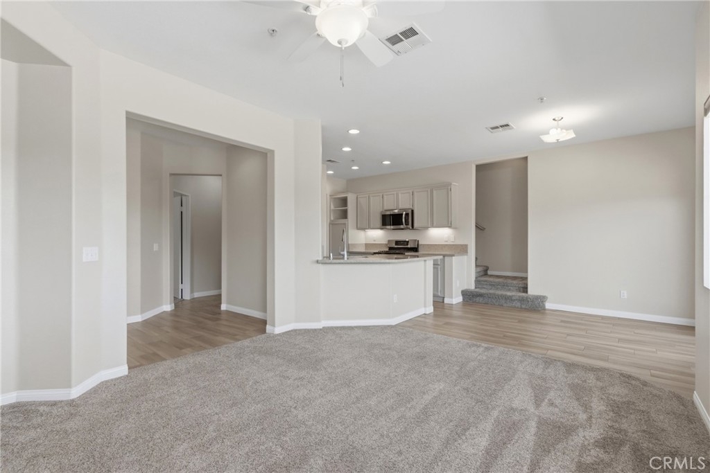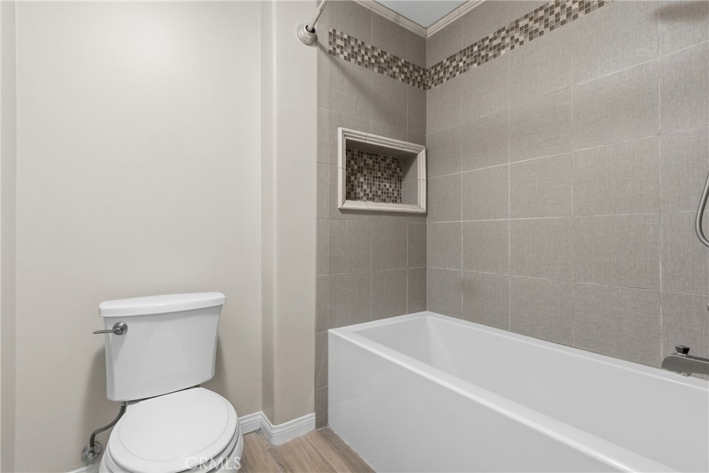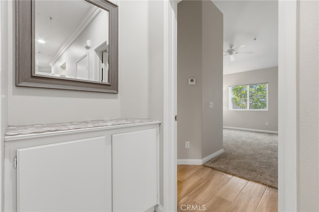 Welcome to a truly rare opportunity in the heart of Temecula. This beautifully upgraded downstairs condo with a private backyard offers a unique blend of comfort, flexibility, and peaceful outdoor living that’s hard to find. Located within a secure gated community, this home features 2 bedrooms and 2 bathrooms, along with a spacious upstairs loft complete with a walk-in closet ideal for a potential 3rd bedroom, home office, or bonus living space. Thoughtfully updated in neutral tones, the home is warm, inviting, and ready for you to make it your own. Wood-look tile flooring and plush carpet run throughout, creating a seamless and stylish feel. The kitchen is both functional and welcoming, featuring Silestone quartz countertops, off-white cabinetry, included refrigerator, and a dining area that opens to the backyard through a sliding glass door perfect for indoor-outdoor living. The adjacent family room offers a cozy fireplace and large windows that bring in natural light and serene backyard views. Tucked toward the back of the home for added privacy, the oversized primary suite features a walk-in closet, ceiling fan, and a beautifully remodeled bathroom with dual sinks and a custom tile shower. A secondary bedroom and full bathroom are also conveniently located on the main level, along with an indoor laundry room complete with storage-washer and dryer included. Upstairs, the expansive loft provides additional flexibility with its own walk-in closet and ceiling fan, along with beautiful mountain views. Whether used as a guest space, office, or converted into a third bedroom, it adds incredible versatility to the home. What truly sets this property apart is the oversized private backyard - a rare find for a condo. Enjoy fresh sod, pomegranate and plum trees, a vinyl fence, and newly painted concrete, all backing directly to Temecula Creek. This peaceful, scenic setting is perfect for morning coffee, relaxing evenings, or entertaining guests. The attached 2-car garage is complete with epoxy flooring, insulated doors, and built-in storage cabinets. Situated in the highly sought after Auberry Place community, residents enjoy beautifully maintained grounds along with amenities including a pool, spa, and tot lot. Conveniently located near top-rated schools, Temecula Wine Country, shopping, dining, and just minutes from the 15 Freeway this home truly offers the best of location and lifestyle.