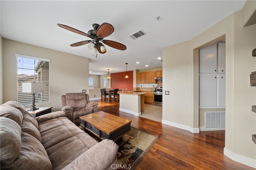 Welcome home to Auberry Place, a gated community in the heart of Temecula. Enter into this light and bright condominium with upgraded unified flooring throughout. Open concept kitchen and living room featuring granite counters, stainless steel appliances and designer cabinets. Enjoy 3 bedrooms, 2 full baths, and two car garage. Ideally located in prime second floor location.The family room offers a stacked stone fireplace along with a balcony off of the dining area. Community features include a pool, park, and access to beautiful walking trails. This condo is located walking distance to shopping, schools and just a short drive to our award winning Temecula Wine Country. Come and see for yourself! You don't want to let this one slip away.