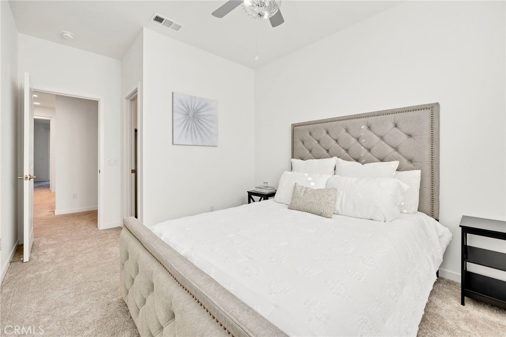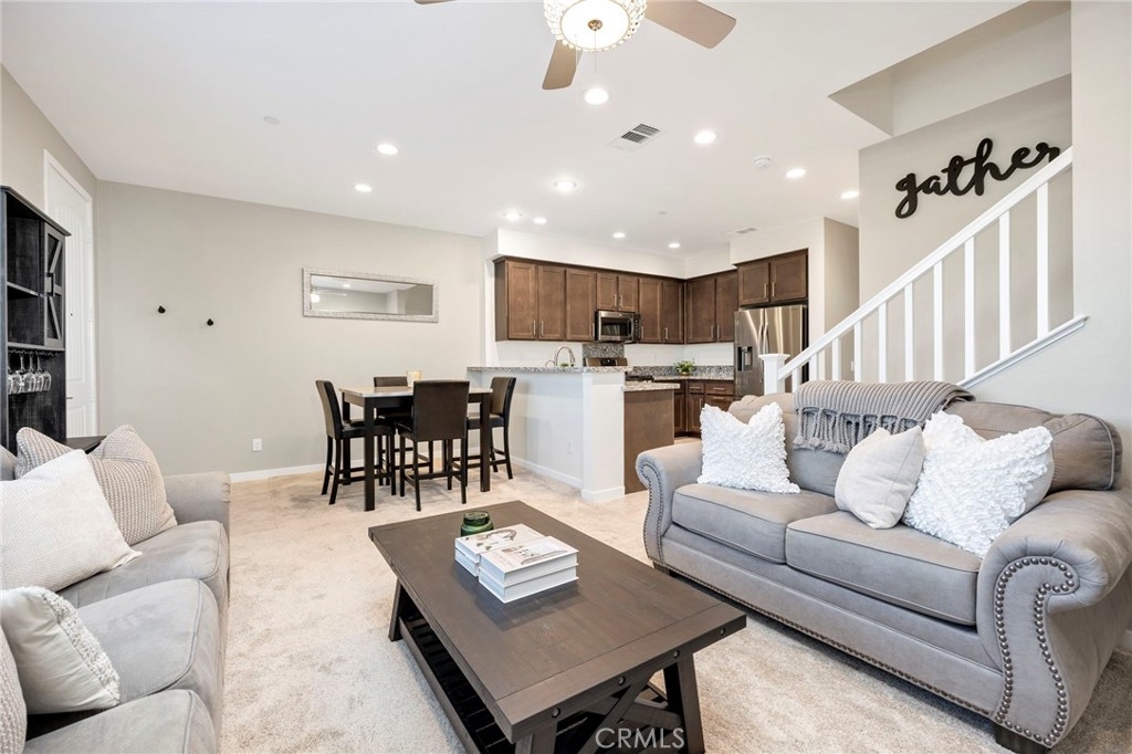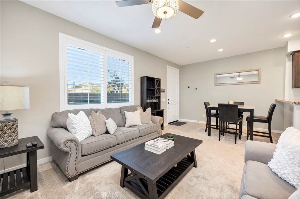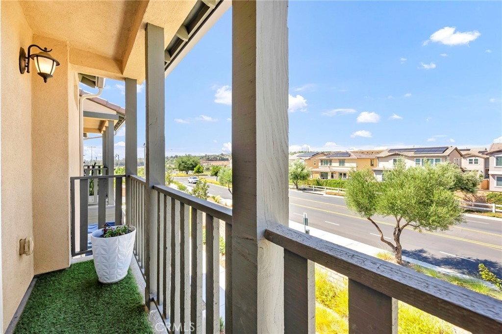 Welcome to this barely lived in gem at *Discovery at Sommers Bend*! With Owned Solar, 3 spacious bedrooms and 2.5 luxurious baths, this turnkey residence is ready to welcome you home. Step into the heart of the home - a stunning kitchen featuring elegant granite countertops, rich coffee-colored cabinets, and top-of-the-line stainless steel appliances that make cooking a delight. A large pantry and convenient storage closet ensure you have all the space you need. The main floor boasts a cozy living room and dining area, perfect for entertaining family and friends, and a stylish powder room for guests. As you explore further, you'll notice plantation shutters adorning every window, adding a touch of elegance and privacy. Venture outdoors to find a charming patio, ideal for morning coffee or evening relaxation. The convenience of a 2-car attached garage with epoxy floors is a rare find, offering both functionality and style. Plus, enjoy the efficiency of a tankless water heater! Upstairs, you’ll find all three bedrooms including the luxurious primary suite, which is your personal retreat with a large walk-in closet and a private balcony boasting breathtaking mountain views. Two additional guest rooms, each featuring walk-in closets, provide ample storage and comfort for family or visitors. The guest bathroom features dual sinks and a convenient shower/tub combo, creating plenty of space for everyone’s needs. As a resident of Sommer’s Bend, enjoy access to resort-style pools, a 21-acre park with playgrounds, fire pits, barbecues, and sports fields, as well as an expansive fitness center, clubhouse, scenic trails, and year-round community events. This is your chance to enjoy elevated living in one of Temecula’s most desirable communities!