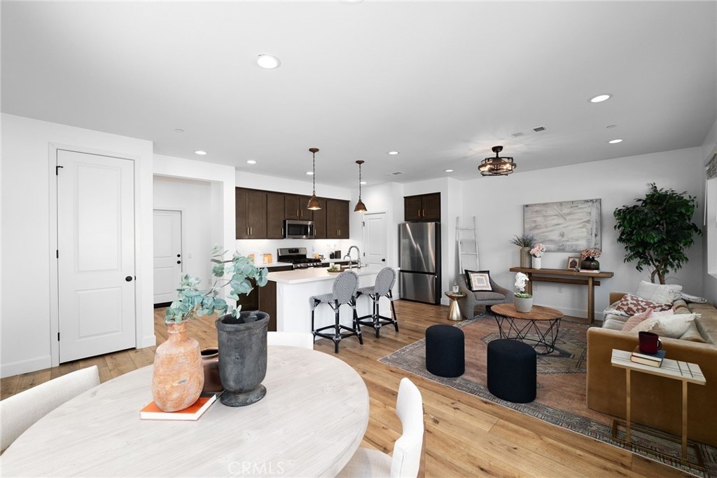 Motivated seller and Preferred lender paid buy down, PAID OFF SOLAR and incentives!!! Indulge in refined, resort-inspired living at 39438 Corvina Lane, a premier end-unit residence nestled within Temecula’s highly coveted Sommers Bend master-planned community. Built in 2024 and offered under $675,000, this nearly new 4-bedroom, 2.5-bath home delivers elevated design, thoughtful upgrades, and the rare opportunity to enjoy better-than-new construction without the wait. From the moment you enter, you’re welcomed by a light-filled, sophisticated interior where luxury vinyl plank flooring, designer lighting, and fresh interior paint create a seamless blend of style and comfort. The open-concept floor plan is perfectly designed for modern living — equally suited for quiet mornings at home and vibrant gatherings with friends and family. The chef-inspired kitchen serves as the heart of the home, featuring sleek cabinetry, modern finishes, and a full suite of included appliances, allowing for effortless move-in readiness from day one. Each space has been carefully curated to feel both timeless and on-trend, offering a calming yet elevated aesthetic throughout. As a premier end-unit, the home enjoys enhanced privacy and abundant natural light, while paid-off solar adds exceptional energy efficiency and long-term cost savings. Every detail has been intentionally selected to offer both beauty and functionality. Beyond the front door, Sommers Bend offers an unparalleled lifestyle surrounded by natural beauty and thoughtfully designed amenities. Residents enjoy resort-style pools and spa, a state-of-the-art fitness center, sports courts, playgrounds, scenic walking trails, BBQ and picnic areas, and an elegant clubhouse, creating a true sense of community and leisure. Ideally located near top-rated schools, Temecula Wine Country, shopping, dining, and convenient freeway access, this home places you at the center of Southern California living, where comfort, convenience, and lifestyle converge. Preferred lender incentives available, including a lender-paid rate buy-down. Contact listing agent for additional details. This is more than a home...t’s a lifestyle curated for those who value quality, connection, and ease. Welcome home to Sommers Bend.