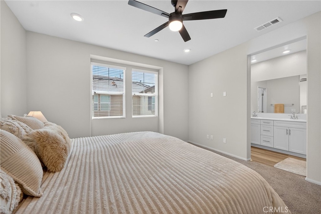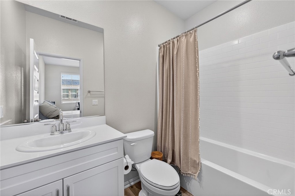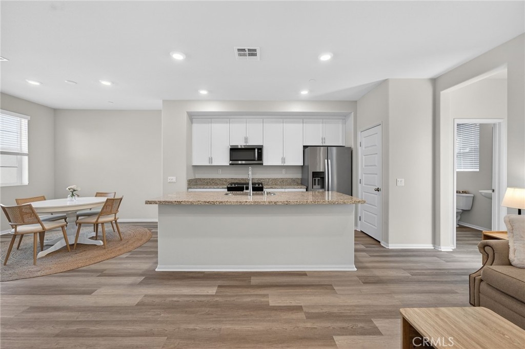 Welcome to this beautifully designed and upgraded 2-bedroom, 2.5-bath condo located in the highly sought-after Heirloom Farms community of Temecula. This modern three-level home offers the perfect blend of style, comfort, and energy efficiency with FULLY PAID SOLAR PANELS and a spacious two-car garage. Step inside to an open-concept main living area filled with natural light. The designer kitchen features granite countertops, ample cabinetry, and a large island that flows seamlessly into the dining and living spaces that are ideal for both everyday living and entertaining. A private balcony extends your living space outdoors, perfect for morning coffee or relaxing evenings. Upstairs, the primary suite offers a well-appointed ensuite bath and generous walk-in closet. The secondary bedroom has it's own bathroom and is equally inviting, versatile and perfect for guests, a home office, or additional family members. The thoughtful layout provides privacy and functionality across all three levels.Residents enjoy a well-maintained community with low HOA dues and convenient access to shopping, dining, and entertainment. Ideally situated just minutes from the I-15 and I-215 freeways, close to Promenade Temecula Mall, award-winning schools, and the renowned Temecula Valley Wine Country, this location truly has it all. Don’t miss the opportunity to own this stylish, energy-efficient home in one of Temecula’s most convenient communities. Schedule your private showing today!