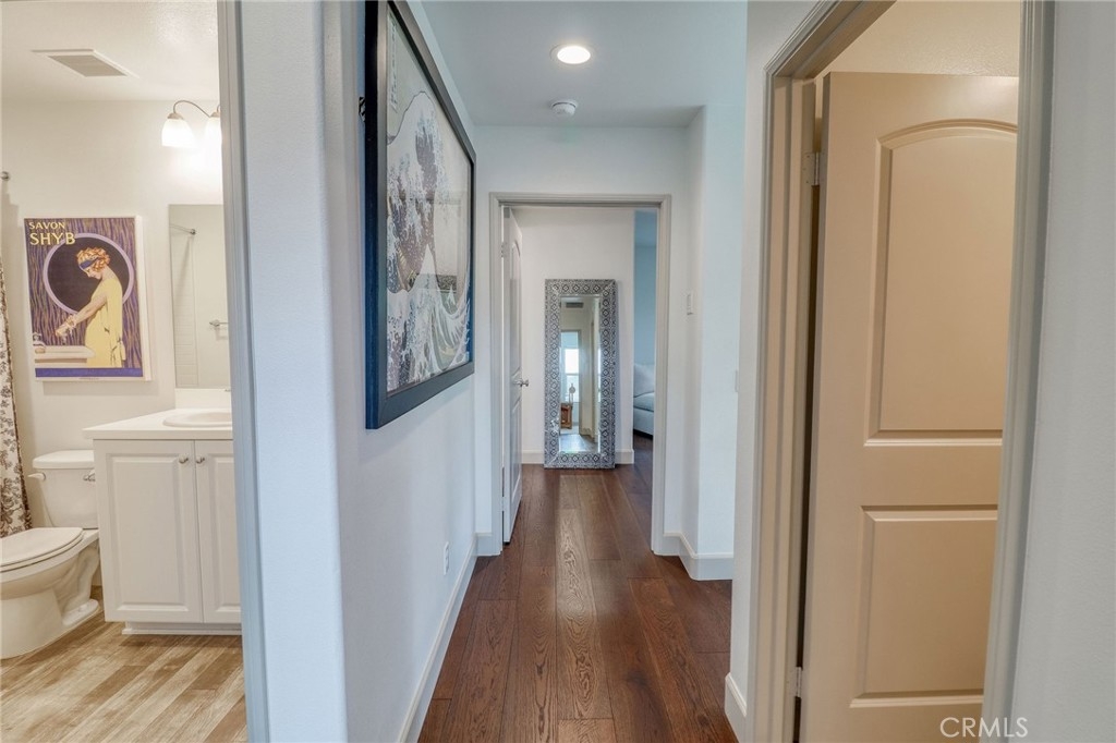 This stunning 3-bedroom, 2.5-bath detached home is perfectly situated on a desirable corner lot in the sought-after Indigo Place community. Designed for modern comfort and style, it showcases engineered hardwood floors, fresh carpet upstairs, a whole-house fan, and elegant top-down bottom-up cellular window coverings that offer both privacy and natural light. Step inside to an open-concept layout where the kitchen, dining, and living areas flow seamlessly—ideal for gatherings or relaxing nights at home. The kitchen is a true centerpiece with crisp white cabinetry, granite countertops, and stainless-steel appliances. Upstairs, the spacious primary suite invites you to unwind with dual sinks, a soaking tub, a separate shower, and a walk-in closet. Two additional bedrooms—both with walk-in closets—plus an upstairs laundry room provide everyday convenience. Further highlights include a private fenced backyard for outdoor entertaining, a two-car garage, and an energy-efficient tankless water heater. Residents of Indigo Place enjoy access to a sparkling community pool, perfect for warm Temecula days. The location couldn’t be better—just minutes from Temecula’s award-winning wineries, hot air balloon adventures, Old Town’s unique shops and dining, Vail Elementary, and Temecula Valley High. Local parks are also close by, offering plenty of outdoor recreation. Move-in ready and impeccably maintained, this home is the perfect blend of style, comfort, and convenience—waiting for you to make it your own.