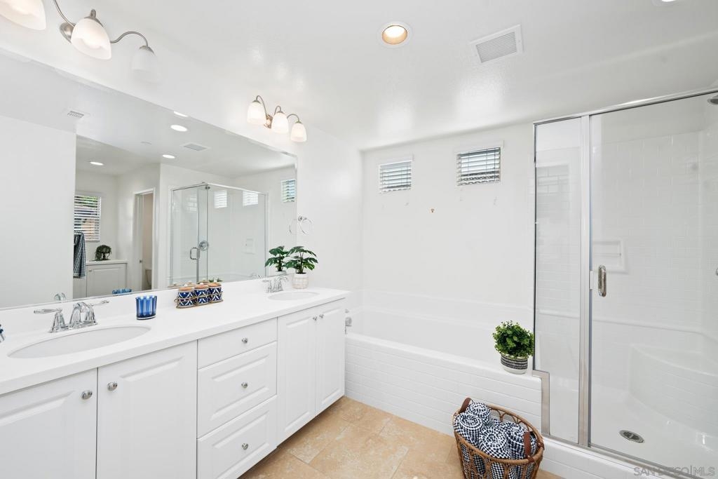 Beautiful, turn-key home in Indigo Place! Back yard is a private oasis with synthetic turf surrounding the entire length of the yard all the way to the back gate, concrete hard scraping and mature garden. Very private! Large great room opens to the gorgeous kitchen with white granite countertops and Frigidaire stainless appliances. Vinyl wood plank flooring throughout the downstairs and plush carpet upstairs. Recessed lighting throughout. Master bedroom is very large with an En-suite spa like bath with dual sinks, extra-large soaking tub and separate shower. Large walk-in closet. 2 additional bedrooms are generous in size. Laundry room is located upstairs for added convenience. Close to major shopping and freeway. Just 3 homes away from the pool! Beautiful, turn-key home in Indigo Place! Back yard is a private oasis with gardens, synthetic turf surrounds the entire length of the yard all the way to the back gate. Very private! Large great room opens to the gorgeous kitchen with white granite countertops and Frigidaire stainless appliances. Vinyl wood flooring throughout the downstairs and plush carpet upstairs. Recessed lighting throughout. Master bedroom is very large with an En-suite spa like bath with dual sinks, extra-large soaking tub and separate shower. Large walk-in closet. 2 additional bedrooms are generous in size. Laundry room is located upstairs for added convenience. Close to major shopping and freeway. Just 3 homes away from the pool! Equipment: Range/Oven, Satellite Dish Sewer: Sewer Connected Topography: LL