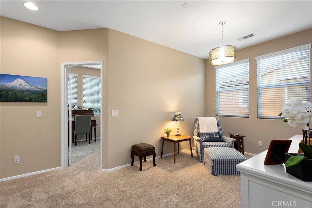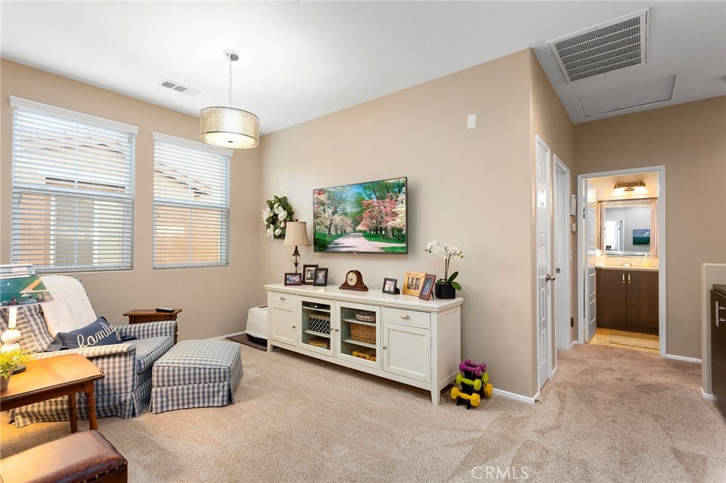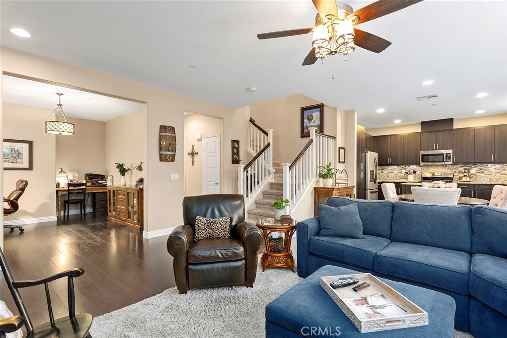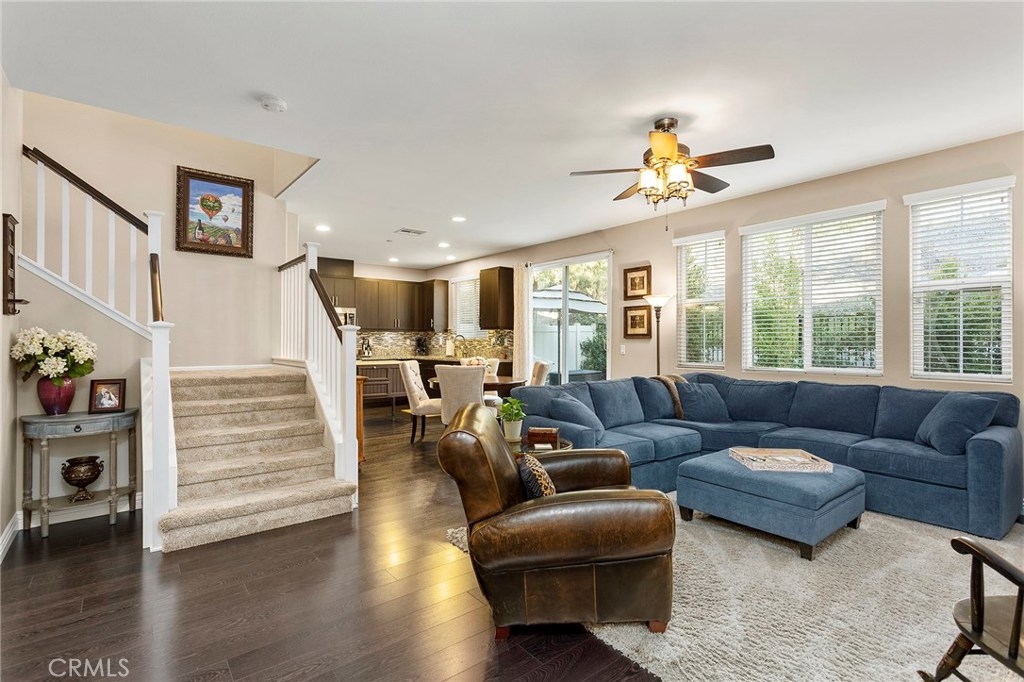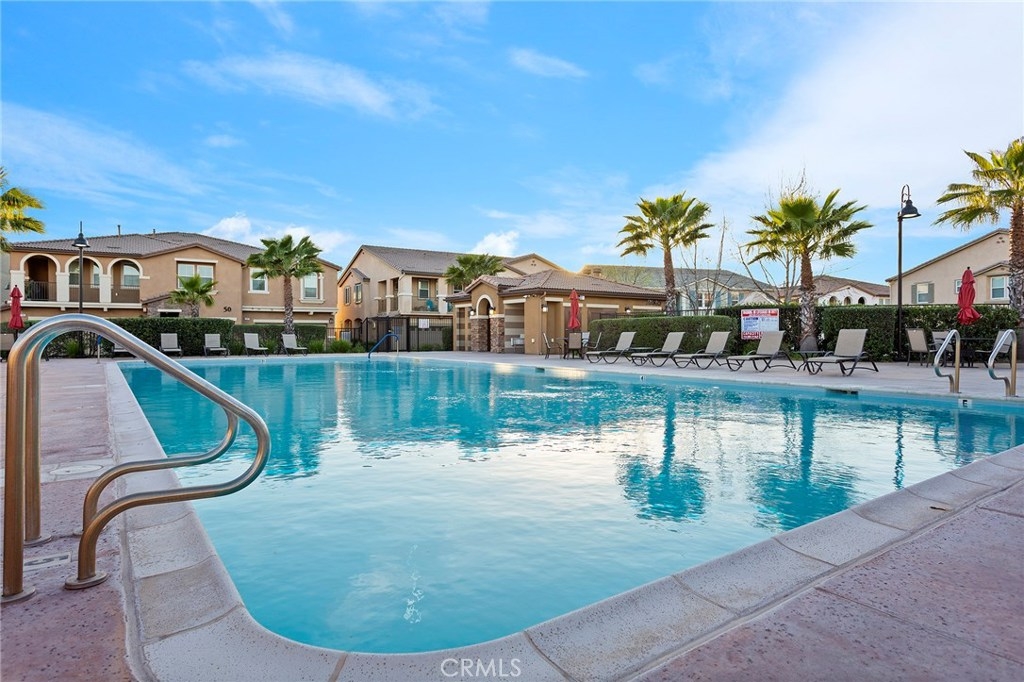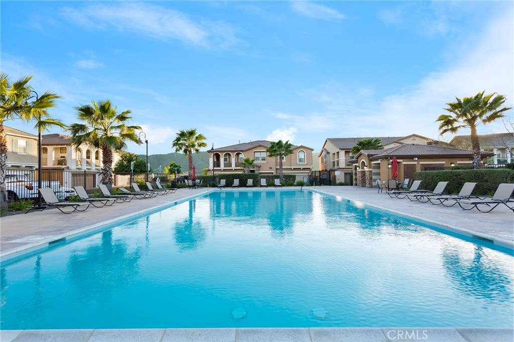 Highly desirable Belvista Plan 3 home with 3 bedrooms, 2.5 baths, den and loft in 1,739 sq ft ! Enter to a large, open-concept living area with dark wood laminate flooring 9’ ceilings, family rm, dining and kitchen - boasting granite, stainless and mocha cabinets. Conv. powder room leads to the laundry room with cabinets and direct access to the 2-car garage, featuring hanging storage shelves and an epoxy floor. All bathrms have matching vanities, sinks and ceramic tile flooring. The 3 bedrms upstairs feature comfy carpet floors with Bedroom #3 being large enough for a queen bed. Large master bedrm and bath with generous walk-in closet. Ceiling fans with lights are distributed throughout the home. Entire int. of home has recently received designer paint. Extremely energy efficient with 20-year pre-paid solar, tankless water heater, radiant barrier sheathing and low-E dual-glazed window - the total electric bill for 2018 was between $5-600! Enjoy your Resort Lifestyle with HOA amenities like pool, spa, bbq grills, covered picnic areas and greenbelts. Home features a private patio area with a hill view, great for entertaining and outdoor grilling! Close to Old Town Temecula, the Duck Pond (walkable), Wineries, Pechanga, Golf, outdoor activities, shopping, dining and the I15 freeway! Perfect for Empty-Nesters, Young Professionals, a Weekend Retreat or for families!