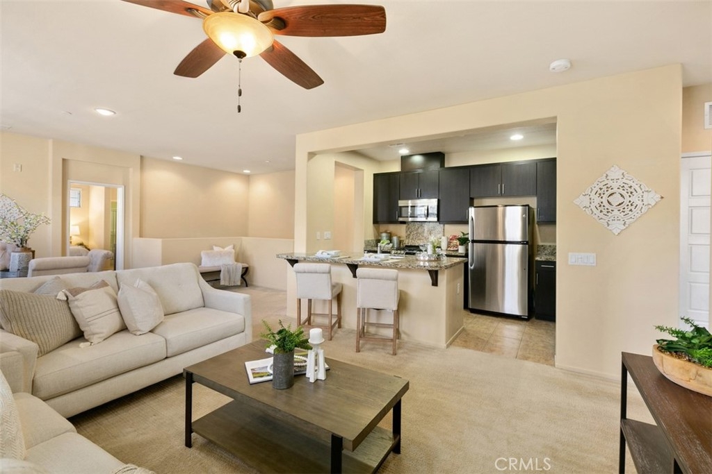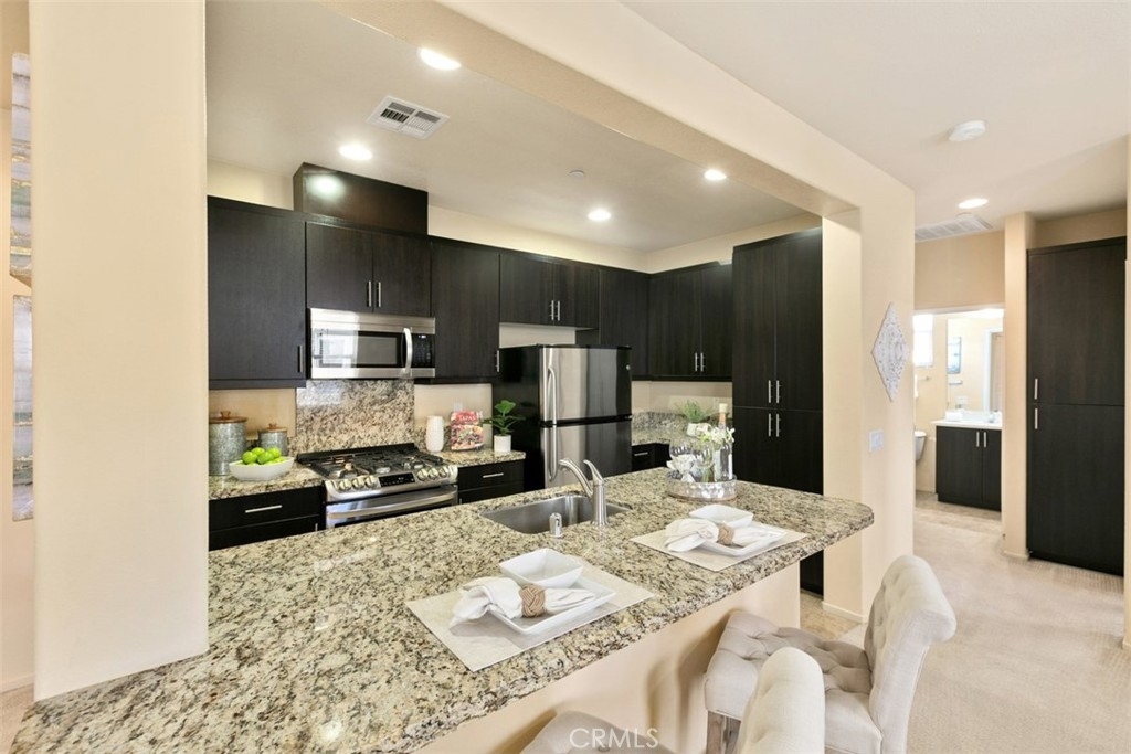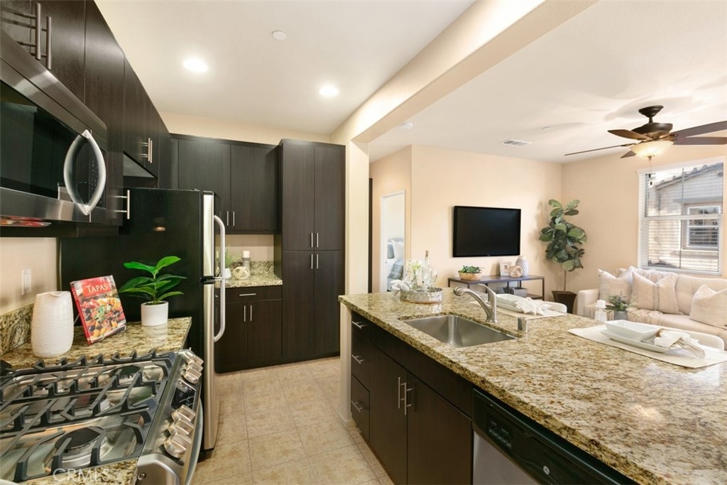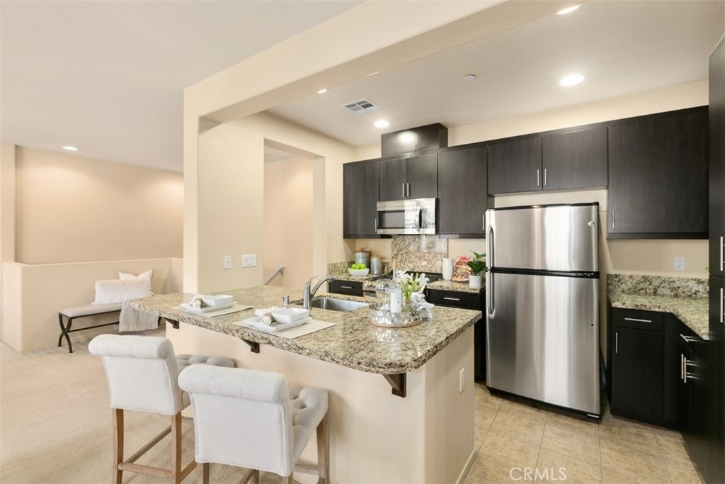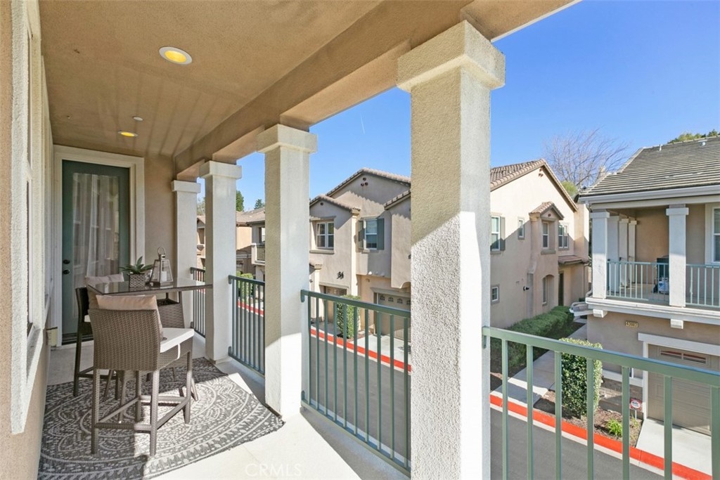 This beautiful Belvista townhouse is conveniently located close to everything Temecula has to offer. Appointed with a large master bedroom and ensuite with dual sinks & large walk-in closet; a second bedroom with separate full bath, indoor laundry room with washer & dryer included; large open living room with dining area. The kitchen features all stainless steel appliances, including a stainless steel refrigerator, microwave, dishwasher, and stove/oven, beautiful granite countertops with large island and dark cabinetry throughout. The open floor plan features 9’ ceilings and tile in the kitchen, laundry room & bathrooms. A large “L” shaped balcony provides gorgeous western views to take in the sunset every evening. The entire living area is on one floor and is accessed by one flight of stairs from the front door or interior door leading from the two car tandem garage below the living space. Community amenities include a Pool, spa with showers & bathrooms, Tot-lot, Gazebos with Picnic Tables, walking trails, open spaces & HOA maintained landscaping. This unit is within walking distance to many restaurants & to Old Town Temecula. Included with the home is a PAID 1.7KW Solar System, Tankless Water Heater, radiant barrier roof sheathing, energy efficient insulation, Low E vinyl windows & many other outstanding and energy efficient features as well as LOW LOW taxes (1.1% all in) and no Mello Roos, what more could you ask for! Call to schedule your private showing today!!!!