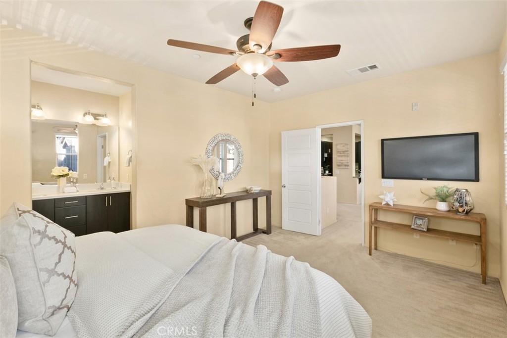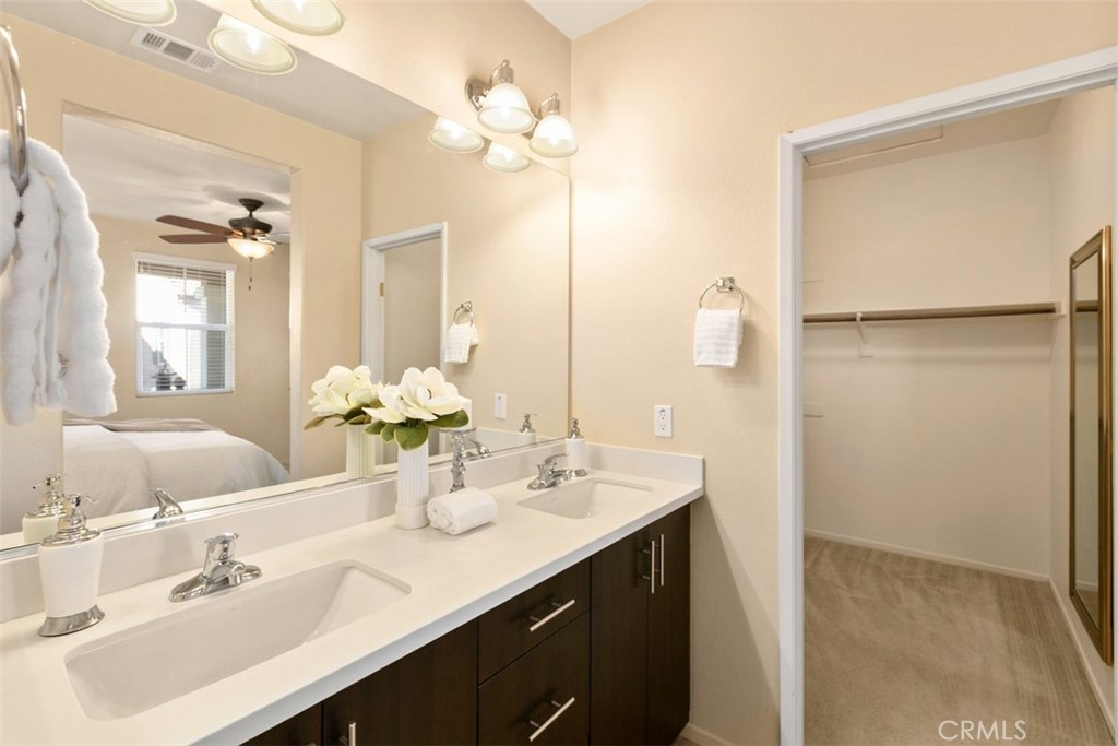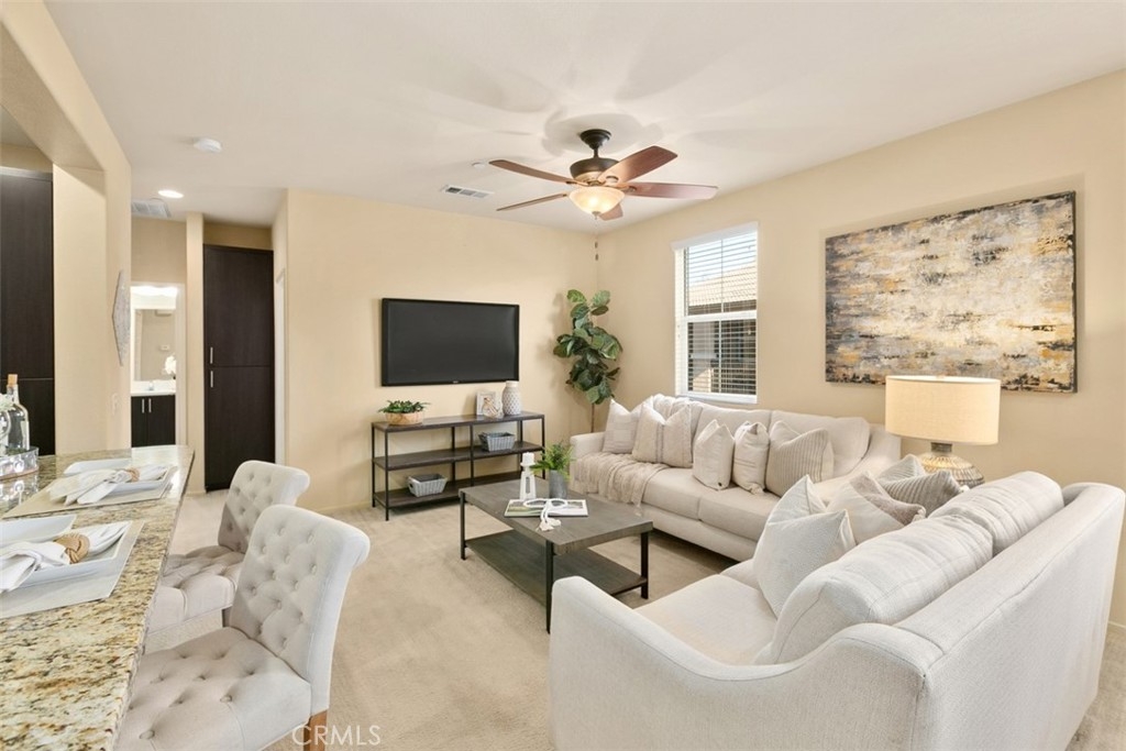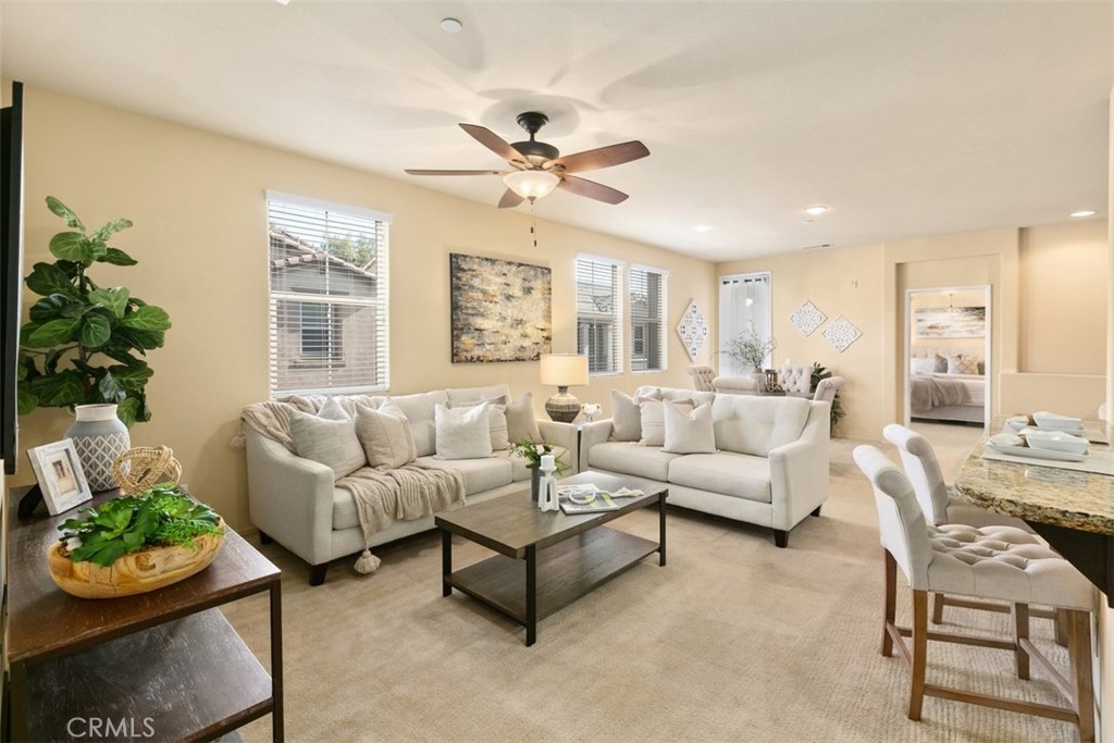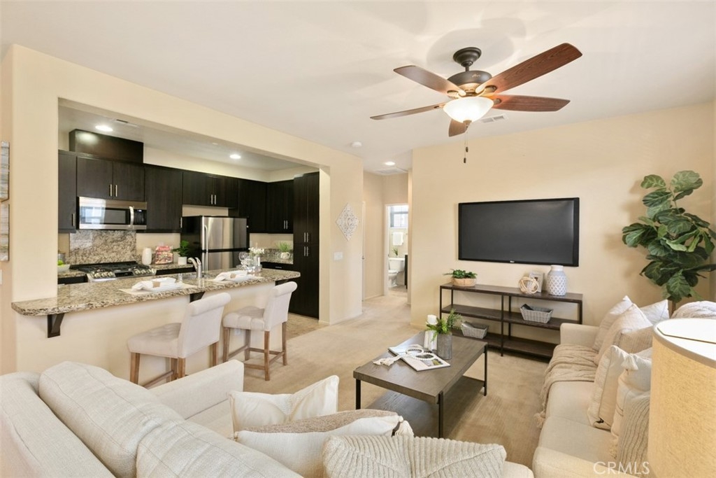 This beautiful Belvista townhouse is conveniently located close to everything Temecula has to offer. Appointed with a large master bedroom and ensuite with dual sinks & large walk-in closet; a second bedroom with separate full bath, indoor laundry room with washer & dryer included; large open living room with dining area. The kitchen features all stainless steel appliances, including a stainless steel refrigerator, microwave, dishwasher, and stove/oven, beautiful granite countertops with large island and dark cabinetry throughout. The open floor plan features 9’ ceilings and tile in the kitchen, laundry room & bathrooms. A large “L” shaped balcony provides gorgeous western views to take in the sunset every evening. The entire living area is on one floor and is accessed by one flight of stairs from the front door or interior door leading from the two car tandem garage below the living space. Community amenities include a Pool, spa with showers & bathrooms, Tot-lot, Gazebos with Picnic Tables, walking trails, open spaces & HOA maintained landscaping. This unit is within walking distance to many restaurants & to Old Town Temecula. Included with the home is a PAID 1.7KW Solar System, Tankless Water Heater, radiant barrier roof sheathing, energy efficient insulation, Low E vinyl windows & many other outstanding and energy efficient features as well as LOW LOW taxes (1.1% all in) and no Mello Roos, what more could you ask for! Call to schedule your private showing today!!!!