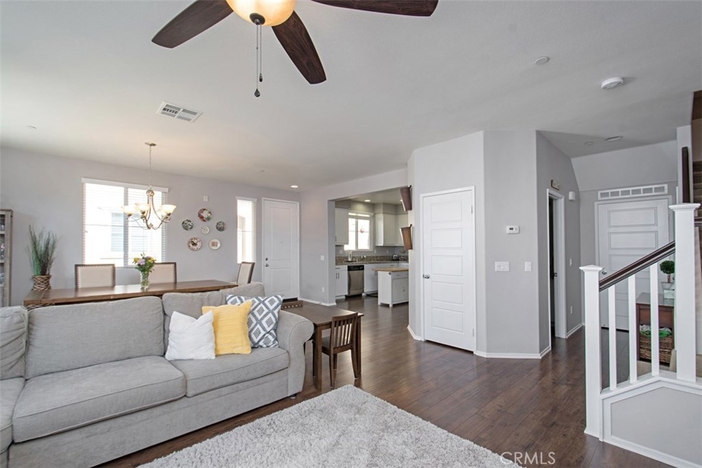 Welcome home to 43127 Avenida Cielo located in Temecula's most sought after community BelVista with low taxes and NO Mello-Roos. This home features 3 bedrooms, 2.5 bathrooms and the most desirable, open floor plan offered in the community. The Expansive 9 ft ceilings, oversized windows and open floor plan bring in an abundance of light. Its many features include granite kitchen counters, chalk wall in kitchen, beautifully upgraded laminate flooring downstairs, white easy care thermofoil cabinets throughout, e-stone bathroom counters, upgraded open stair rail system, ceiling fan in living room, recessed canned lighting, fully finished attached two car garage, dual glazed windows to save energy, two walk-in closets in the master. Home is energy efficient & complete with builder pre-paid solar lease & tankless water heater. Radiant barrier reflective roof sheathing keeps the attic up to 40 degrees cooler in the summer. The private back patio is complete with 6 ft vinyl fencing, concrete and paving stones. Belvista living amenities include picnic & bar b que areas, swimming pools, playground & spa, convenient location for commuters with easy access to freeway. Only minutes away from shopping, Old Town Temecula, wineries, & more. This home has it all and it is priced to sell. Don't miss out on this wonderful opportunity!