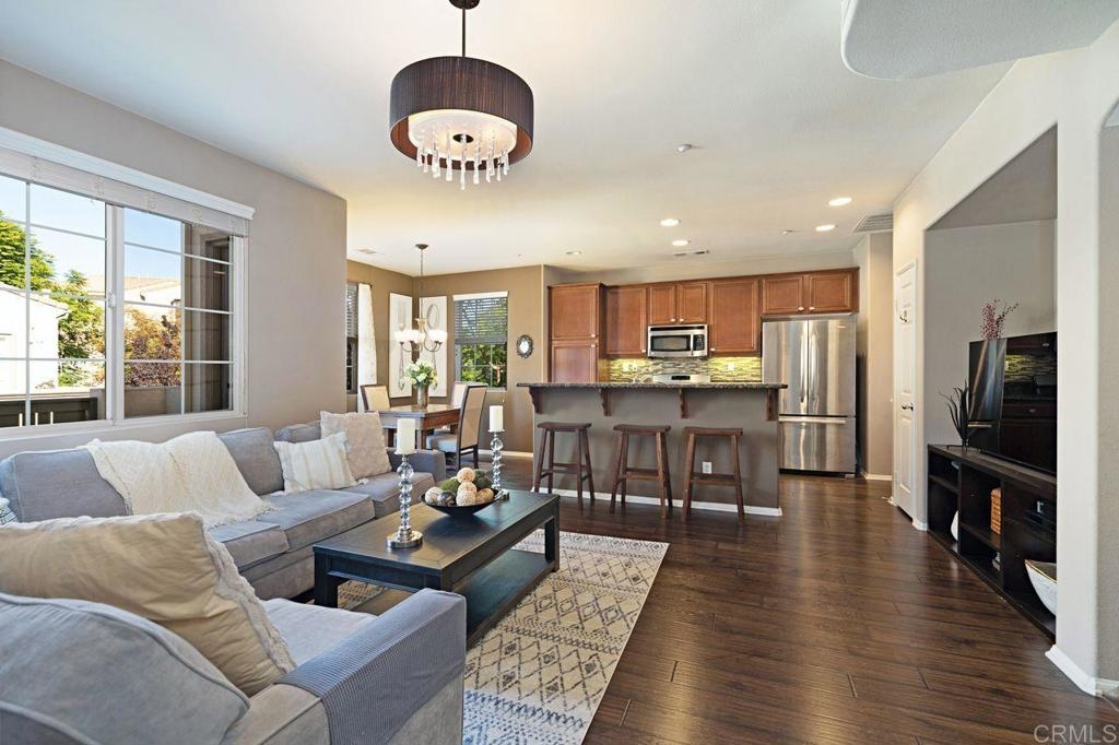 Beautifully maintained condo in Temecula Lanes. Two bedrooms, two baths with open concept living area and high ceilings. Enjoy luxury vinyl flooring in the living areas and private balcony amongst the treetops. The top level is the primary retreat, complete with en-suite bath, dual sinks, walk-in closet and separate water closet. Unit has a stackable laundry closet on the second floor, a new A/C unit installed in 2020, and a one car garage with direct access. Community features pool, hot tub, clubhouse, tot lot, walking paths, lush landscaping, BBQ area, and ample parking. This unit is ideally located across from the pool and next to a playground. Just minutes from local schools, wineries, Pechanga Casino, and the 15 Freeway. The community also has convenient access to the Community Sports Park which provides walking trails, basketball and tennis courts, a playground and a soccer field. This turn-key condo would make an ideal first home, investment property or down-sizing opportunity. Complex is FHA and VA approved. Hurry to make it yours!