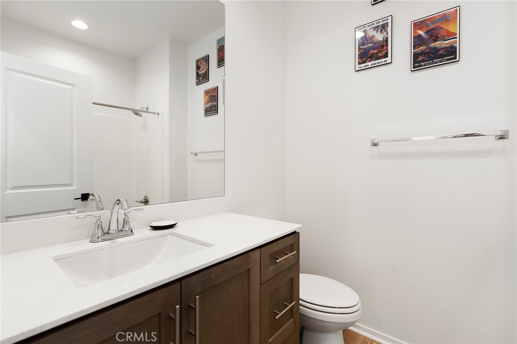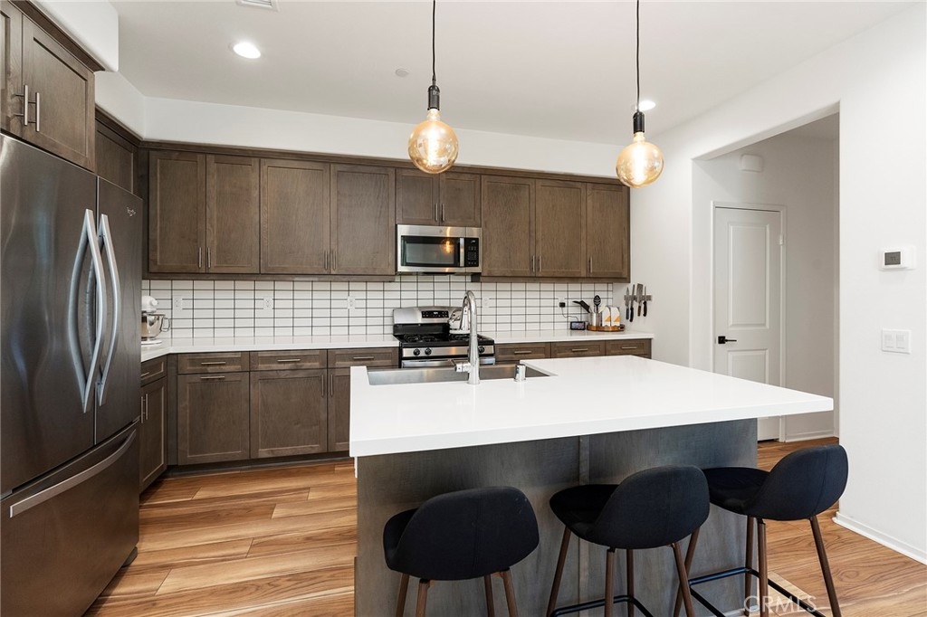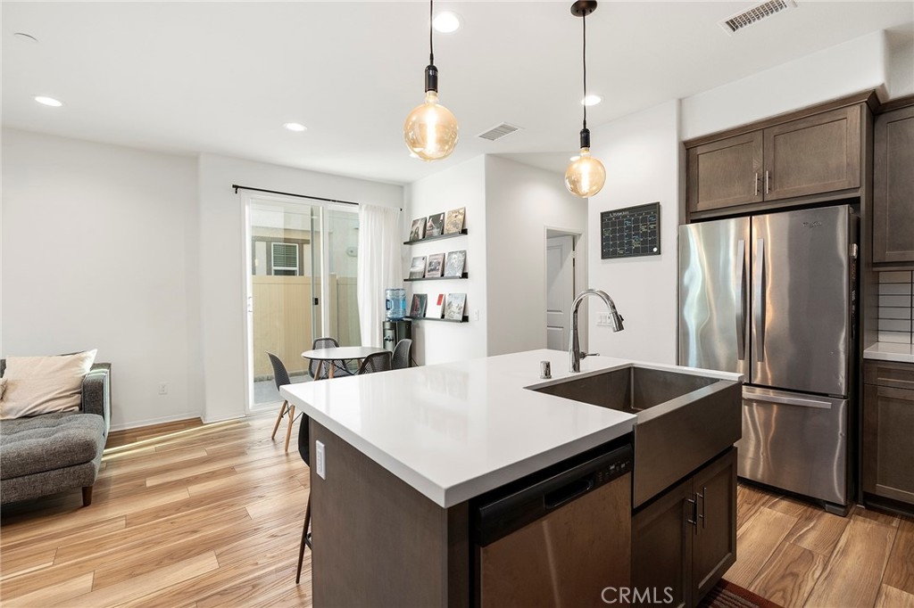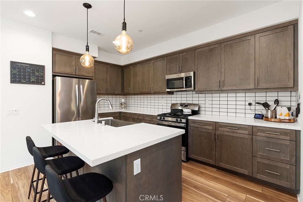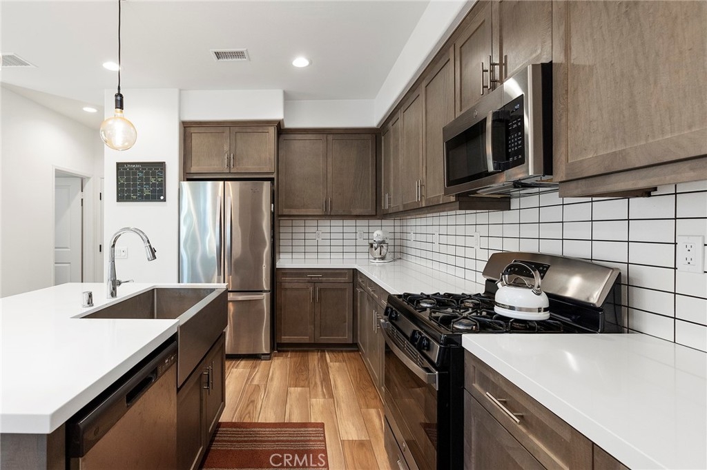 Stunning, better than new condo! Located in the gated community of Rancho Soleo. This condo has an attached 2 car garage with direct access into the home. As you enter the home, the cozy family room is open to the very spacious kitchen with beautiful quartz countertops, upgraded designer cabinetry, stainless steel farmhouse sink, stainless steel dishwasher, stove, and microwave, large pantry, large island, an abundance of countertop space! You have an eating area plus an eat at bar. Upstairs has the large primary bedroom with balcony, spacious primary bathroom with dual sinks, step in shower, and large walk in closet! The 2 additional bedrooms are large and one of them has a walk in closet! The laundry room is conveniently located upstairs. The outdoor patio is fenced and a great space to relax, kids and pets will enjoy this area as well! The HOA offers a wonderful pool, spa, and a few playgrounds spread out around the community. This location is PRIME as it's easy access off the 15 freeway and 79 south!