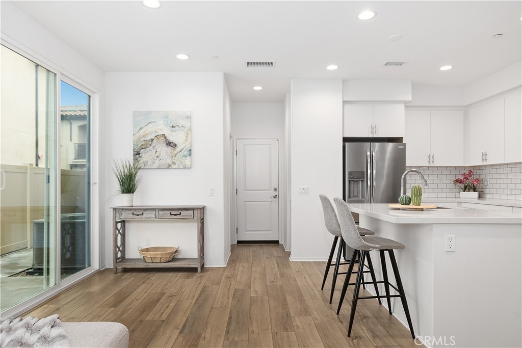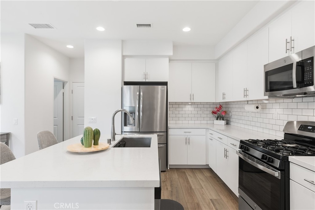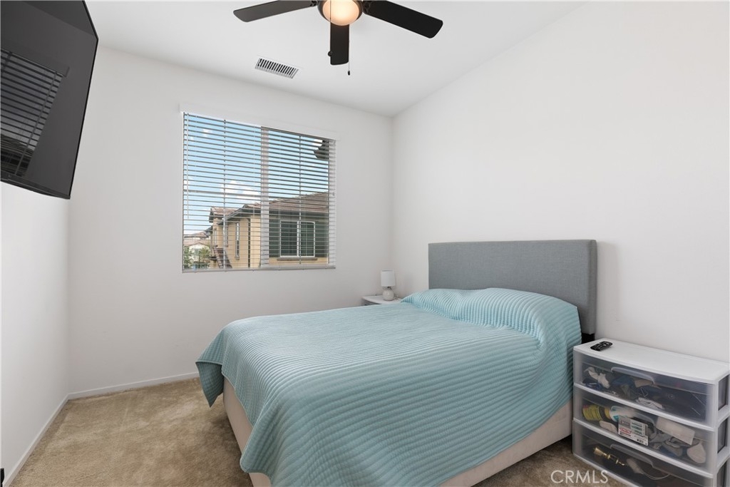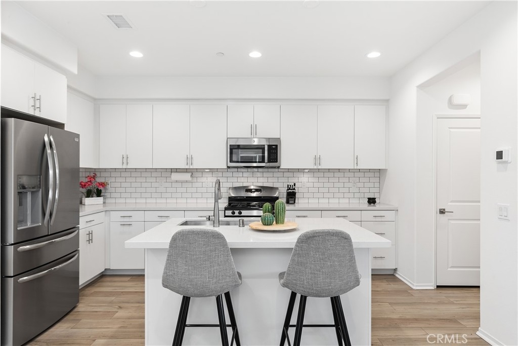 PRICE IMPROVEMENT! Highly Motivated Seller. Welcome to this beautiful 3 bedroom, 2.5 bath condo nestled in a gated community that offers both comfort and convenience. With 1,511 sqft of living space, this home provides the perfect blend of contemporary style and practicality. As you step inside, you will be greeted by a comfortable living area featuring a custom built entertainment center, open floor concept and beautiful laminate flooring that flows seamlessly throughout the downstairs. The open concept living and dining area is bathed in natural light, thanks to a large sliding door that leads out to a private patio, creating that desired indoor/outdoor flow. The kitchen is right off the living space featuring quartz countertops, large sink, recessed lighting, tons of counter space and storage. Directly off the kitchen you will notice a large pantry and a closet for storage. The downstairs living space also has direct access to the garage and a powder room. Upstairs you will find all 3 bedrooms, additional full bathroom, convenient laundry room and a linen closet at the end of the hall. The primary suite is complete with a small private balcony accessed through large sliding glass door, offering a serene retreat to start or end your day. The en-suite bathroom consist of a large shower, double vanity sink with quartz countertops, and a large walk in closet. Two additional bedrooms are located at the end of the hall featuring ceiling fans and large closets. Located in Rancho Soleo Community, this property offers convenience being located near the 15, Pechenga Casino Resort and close to Temecula's Finest Wineries. With it's thoughtful design, stylish finishes, and a prime location, this condo is a rare find you don't want to miss!