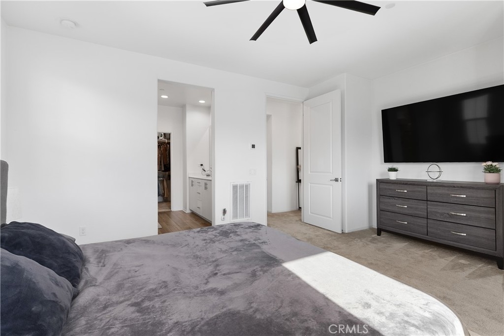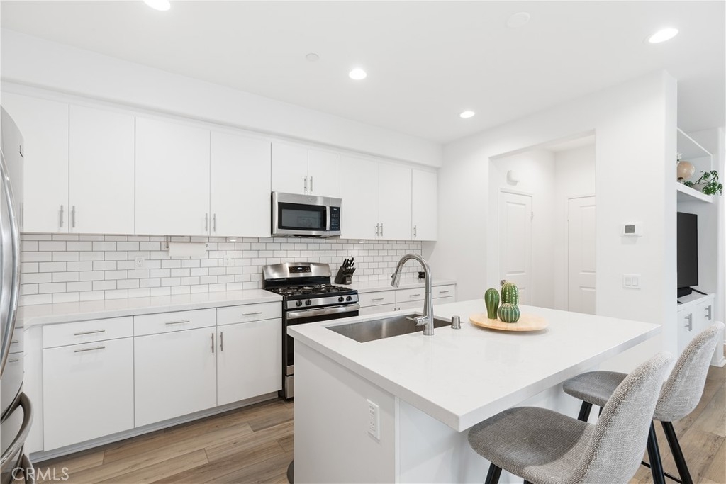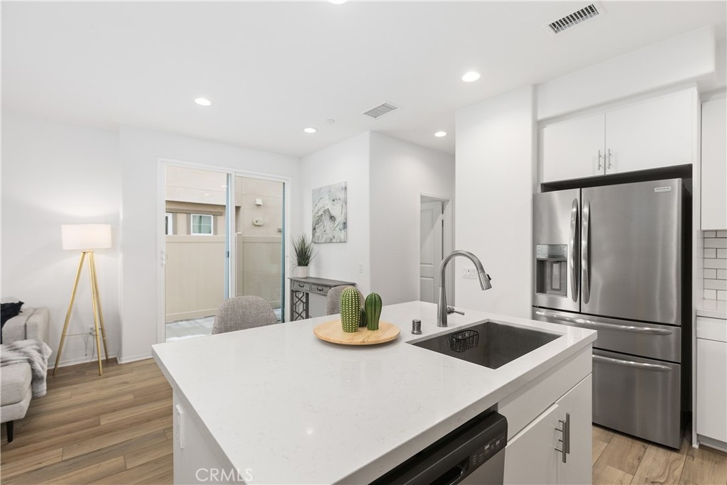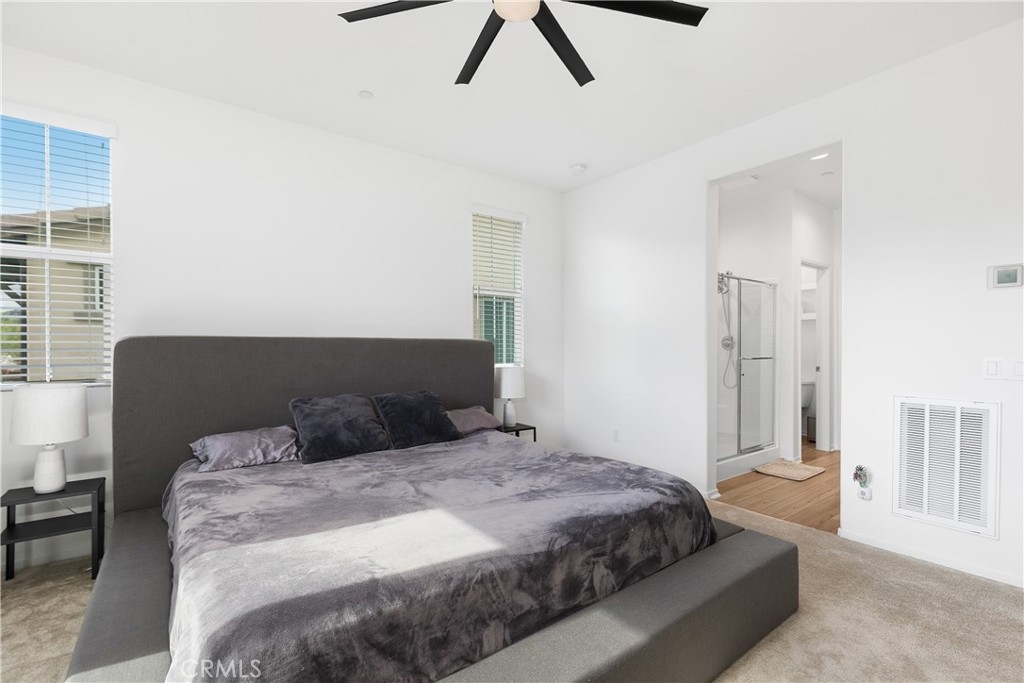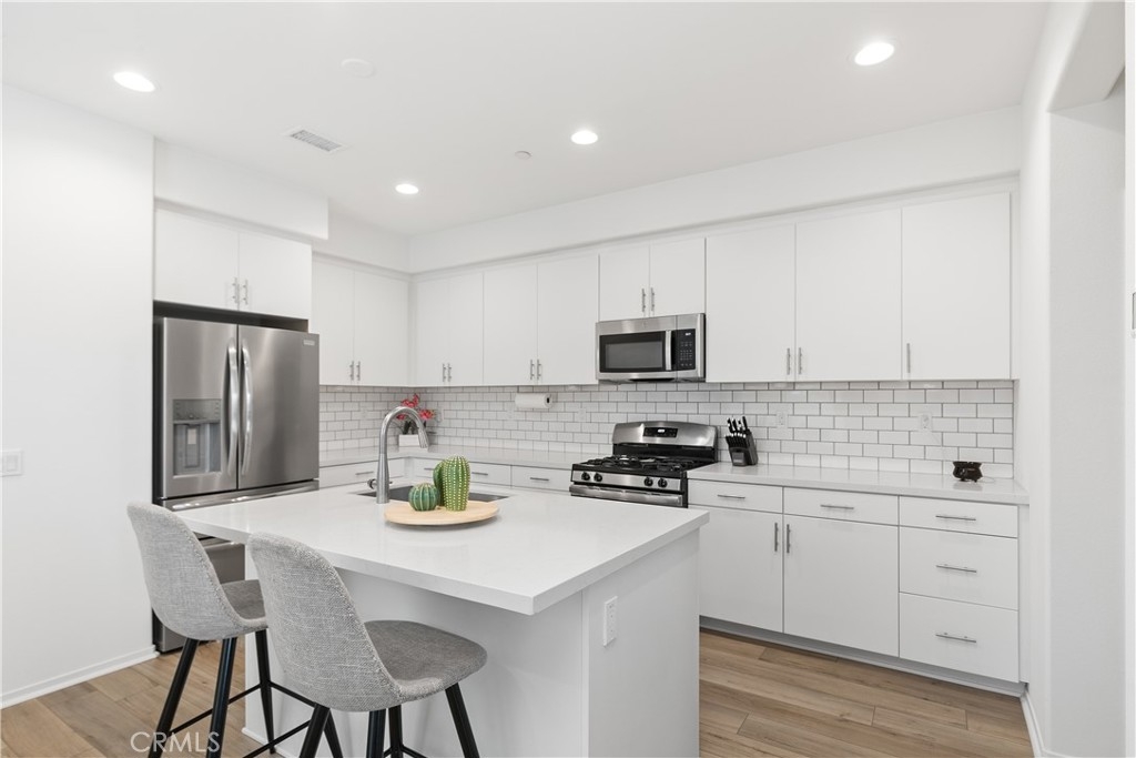 PRICE IMPROVEMENT! Highly Motivated Seller. Welcome to this beautiful 3 bedroom, 2.5 bath condo nestled in a gated community that offers both comfort and convenience. With 1,511 sqft of living space, this home provides the perfect blend of contemporary style and practicality. As you step inside, you will be greeted by a comfortable living area featuring a custom built entertainment center, open floor concept and beautiful laminate flooring that flows seamlessly throughout the downstairs. The open concept living and dining area is bathed in natural light, thanks to a large sliding door that leads out to a private patio, creating that desired indoor/outdoor flow. The kitchen is right off the living space featuring quartz countertops, large sink, recessed lighting, tons of counter space and storage. Directly off the kitchen you will notice a large pantry and a closet for storage. The downstairs living space also has direct access to the garage and a powder room. Upstairs you will find all 3 bedrooms, additional full bathroom, convenient laundry room and a linen closet at the end of the hall. The primary suite is complete with a small private balcony accessed through large sliding glass door, offering a serene retreat to start or end your day. The en-suite bathroom consist of a large shower, double vanity sink with quartz countertops, and a large walk in closet. Two additional bedrooms are located at the end of the hall featuring ceiling fans and large closets. Located in Rancho Soleo Community, this property offers convenience being located near the 15, Pechenga Casino Resort and close to Temecula's Finest Wineries. With it's thoughtful design, stylish finishes, and a prime location, this condo is a rare find you don't want to miss!